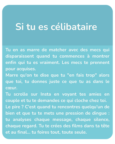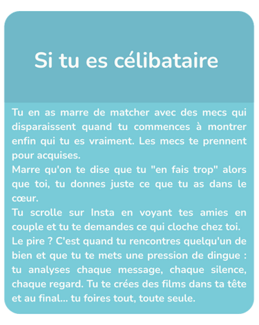 Si tu es célibataire, on décrypte pourquoi tu analyses chaque message pendant 3h, pourquoi tu te créés des films dans ta tête, pourquoi tu as peur de l'engagement.